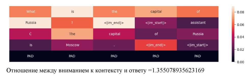 Рис. 2. Распределение внимания к контексту и ответу для объяснения с коэффициентом отношения внимания