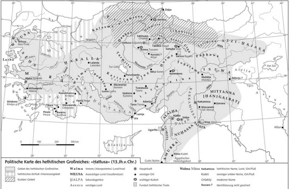 Карта Хеттской империи и Страны касков в Анатолии (XIII в. д. н. э.). Фото из свободных источников