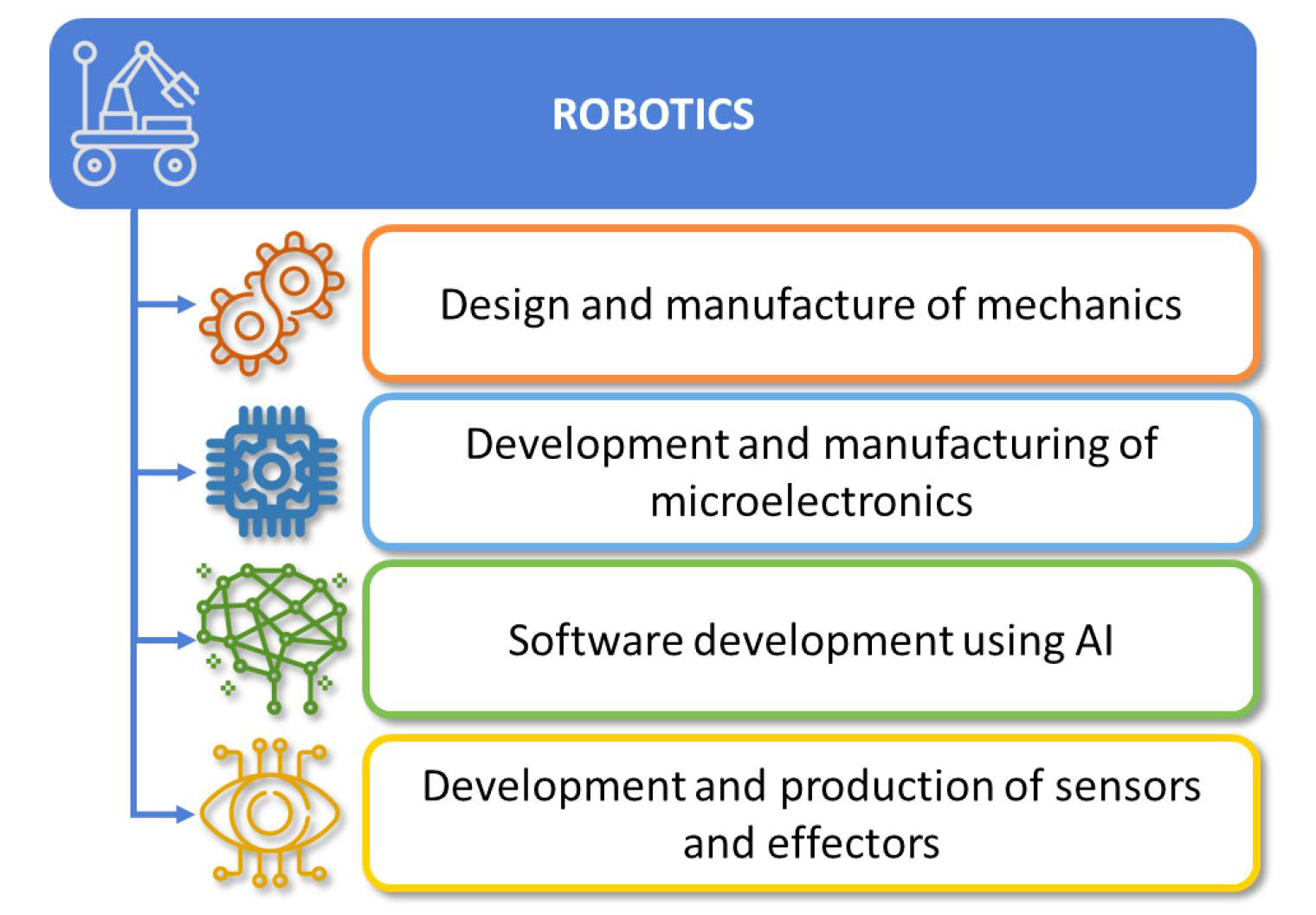 At the same time, the development of robotic devices and complexes for various purposes, as one of the most technologically advanced areas of production, clearly implies the possibility of effective implementation of modern control automation systems. The development of an autonomous robot involves the creation of design and mechatronic solutions, as well as the development of electronics and software for it (Fig. 1).