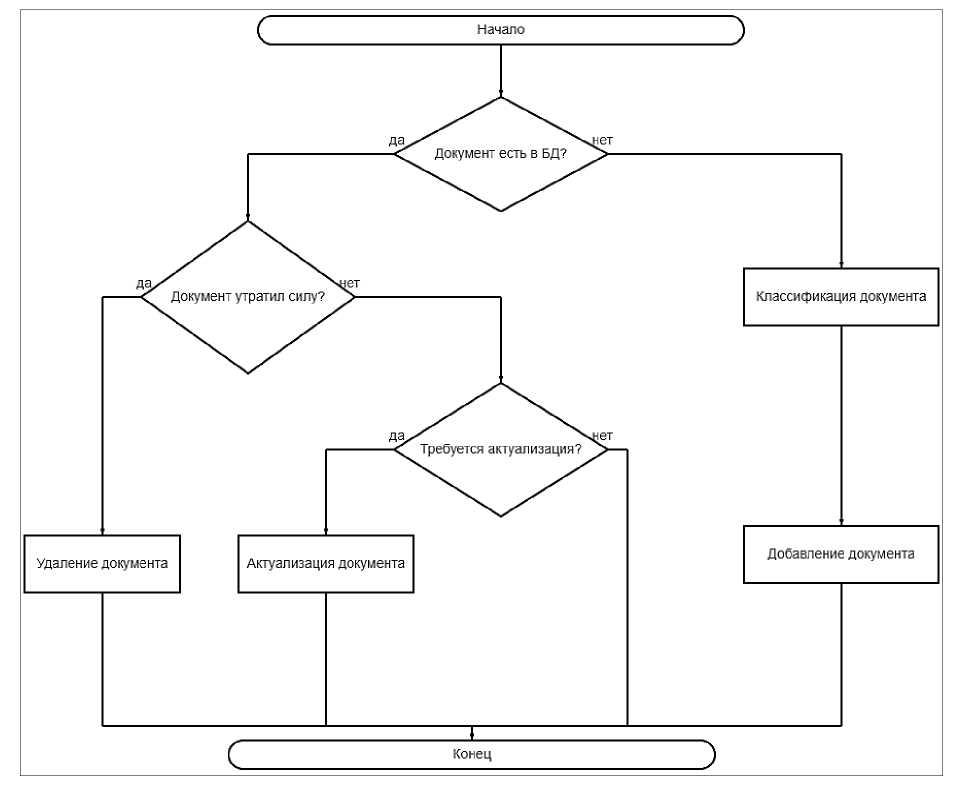 Удаление: если документ утратил силу, он удаляется из базы данных для поддержания актуальности информации.