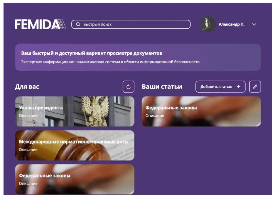 Рис. 4. Главная страница ЭИАС «Фемида»