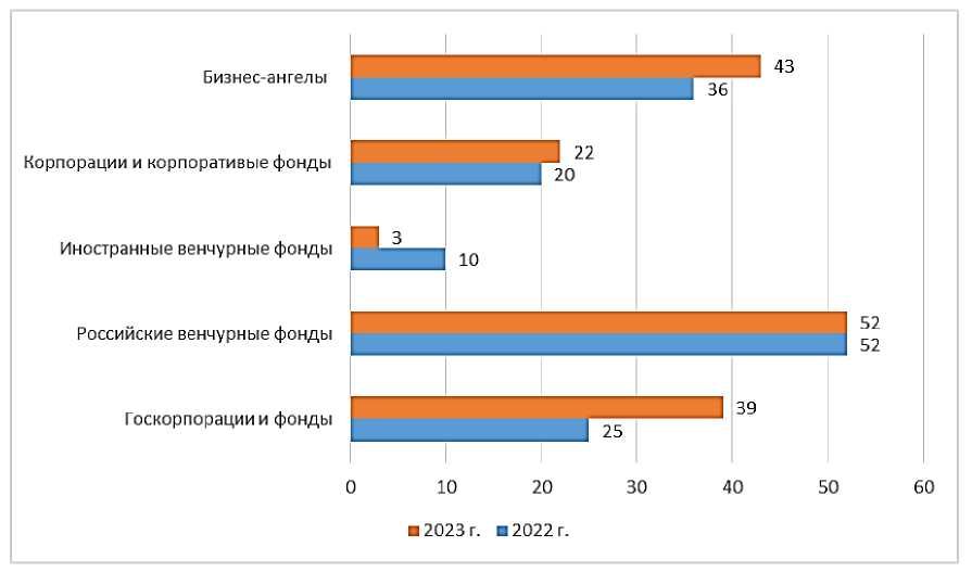 10Венчурная Россия. Результаты 2023 года [Электронный ресурс] // URL: https://dsight.ru/company/ studies-publications/VR2021.pdf (Дата обращения: 01.02.2024). Венчурная Россия. Результаты 2022 года. [Электронный ресурс] // URL: https://dsight.ru/company/studies-publications/VR2023.pdf (Дата обращения: 15.01.2024).