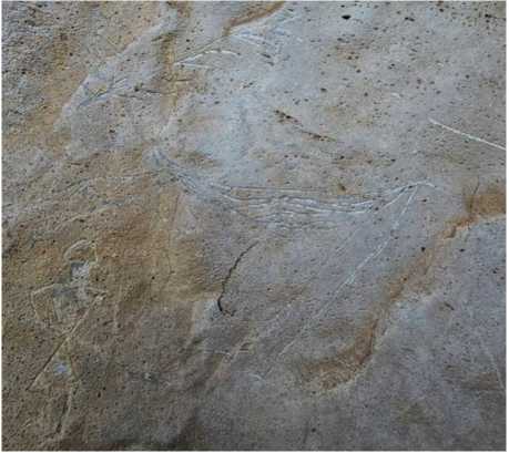Рис. 6. В верхней части наскальной картины изображение бегущего животного