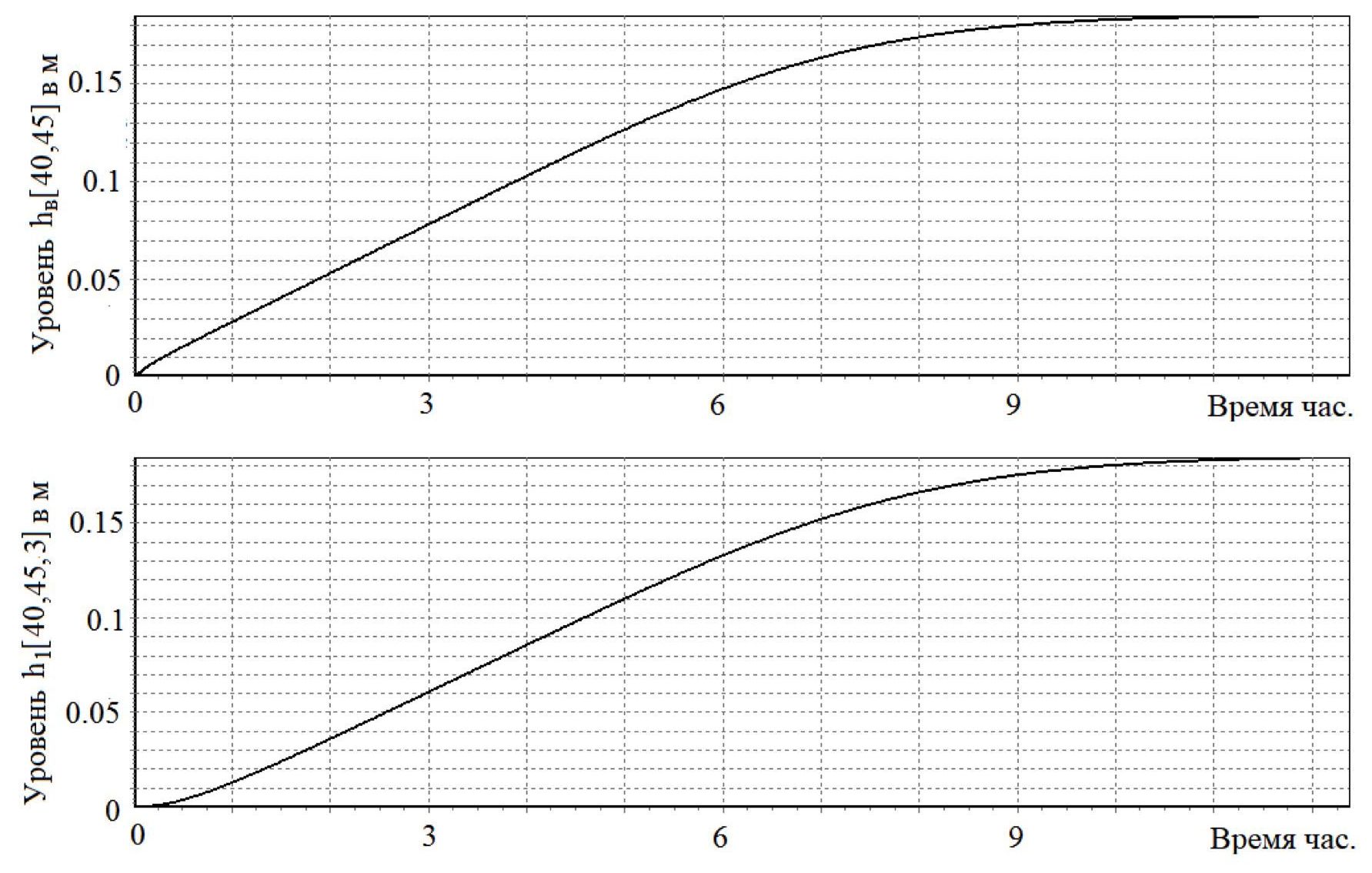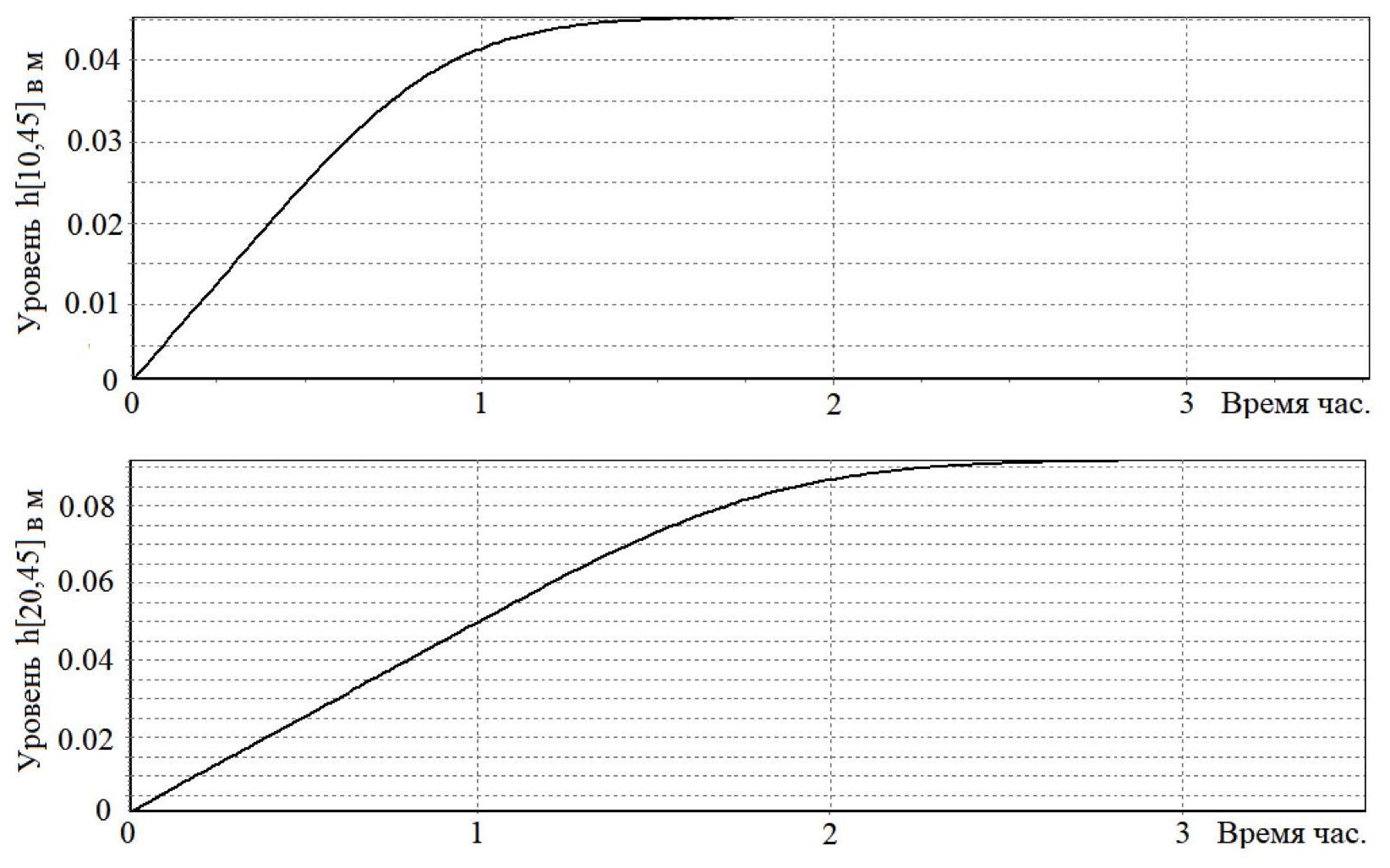 Рис. 5. Средний уровень изменения слоя воды в точках [10, 45] и [20, 45]