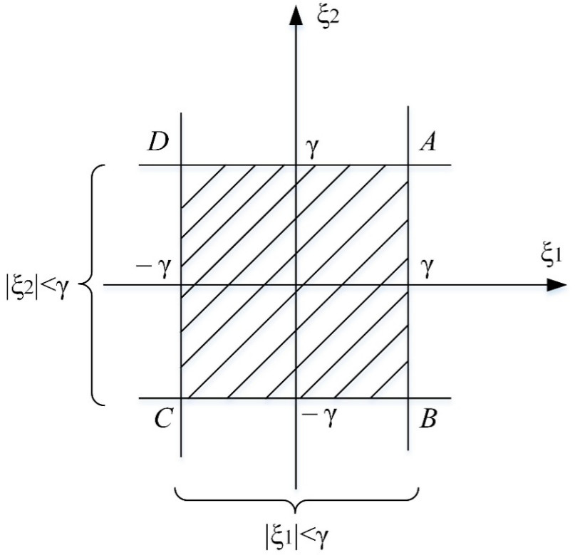 где ξϵR2 – вектор неизвестных параметров, который принадлежит заданному множеству допустимых значений ξϵΞ (множеству неопределенности); P0(s) – номинальный полином, равный (2); |ξ|2 – евклидова норма вектора ξ
