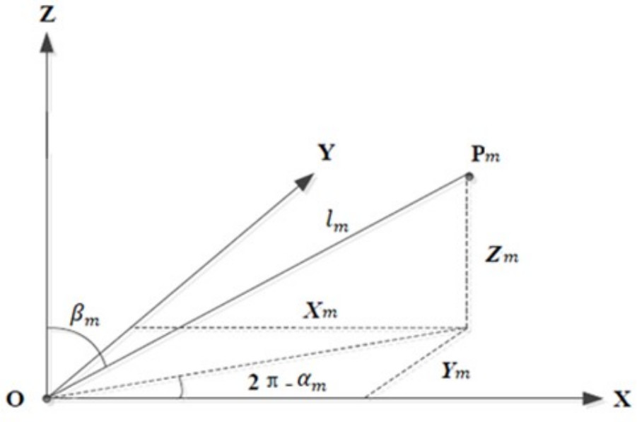 Так как трекер проводит измерения в полярной системе координат (измеряется расстояние и два угла), то все его измерения необходимо будет перевести в декартову систему с помощью системы уравнений вида