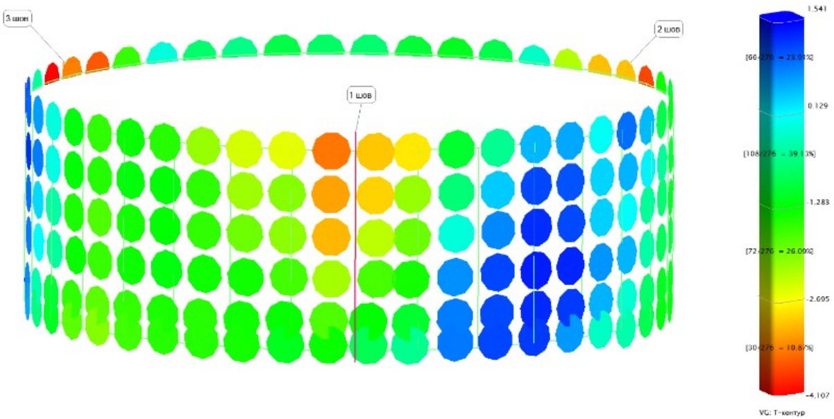 С помощью выбранной конфигурации измерительной системы были проведены измерения геометрических параметров для крупногабаритной обечайки.