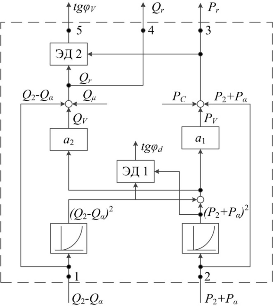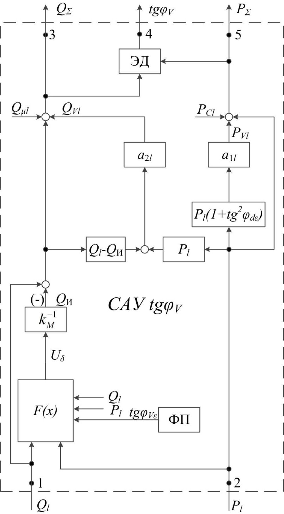 Структурная схема подстанции как объекта управления величиной tgφd или tgφV, построенной согласно 1–5, показана на рис. 2.