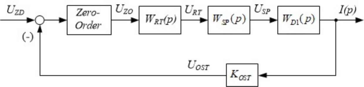 Функциональная схема электропривода с экстраполятором нулевого порядка показана на рис. 1 и состоит из цифрового регулятора и аналоговой части.