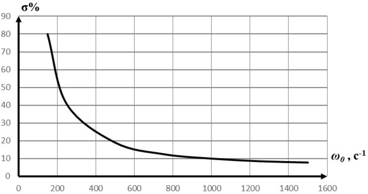 Рис. 4. Зависимость величины перерегулирования от частоты квантования экстраполятора
