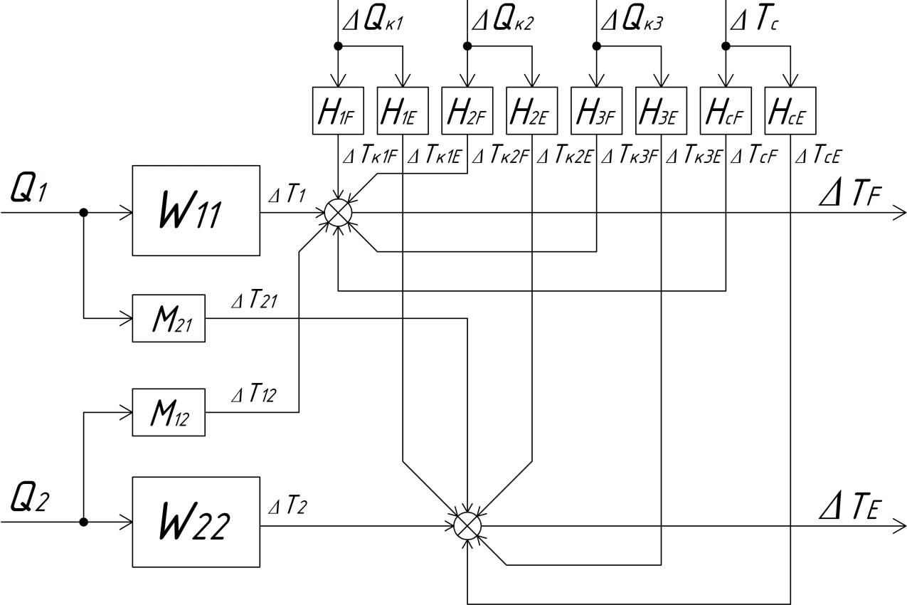 Рис. 10. Линеаризованная структурная схема многомерного объекта управления