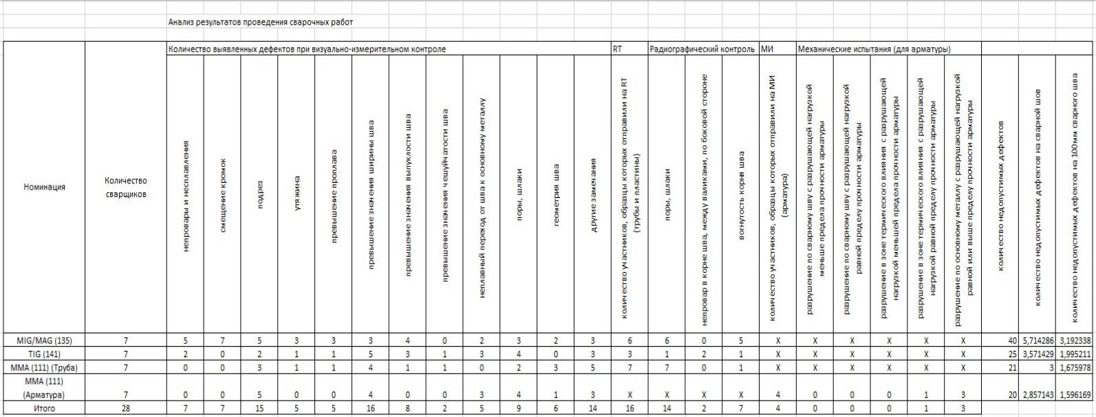 Шаг 5.1. Оценка количества и размеров дефектов сварочных швов, выполненных каждым сварщиком, в соответствии с востребованными технологиями и видами работ.