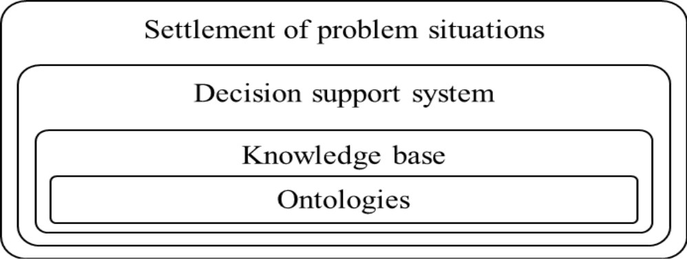 One of the modern approaches to DSS creating is to use ontologies as their basic element [11–13]. The key element that determines the ideology of the decision support system created for the regulation of problem situation is ontology. Therefore, the developed decision support system for intersubjective management of problem situations solving is built on the basis of ontologies (Fig. 2). Ontologies can be defined as “knowledge bases of a special type that can be read, understood and alienated from the developer and / or physically shared by their users” [14] according to T.R. Gruber.