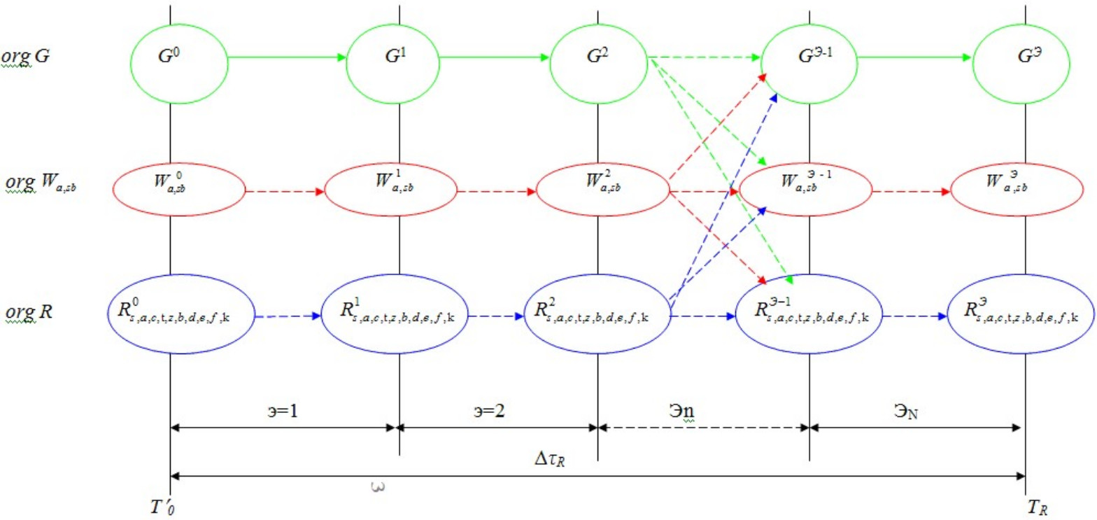 По завершении n-го этапа управления () производится количественная накопительная оценка изменения ресурсных показателей множества (1) (см. рис. 1):