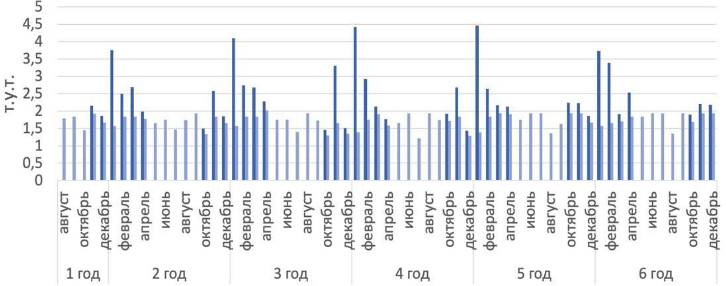 По результатам теплового баланса определена динамика требуемого для обеспечения технологии гальванических процессов количества теплоты (рис. 6).
