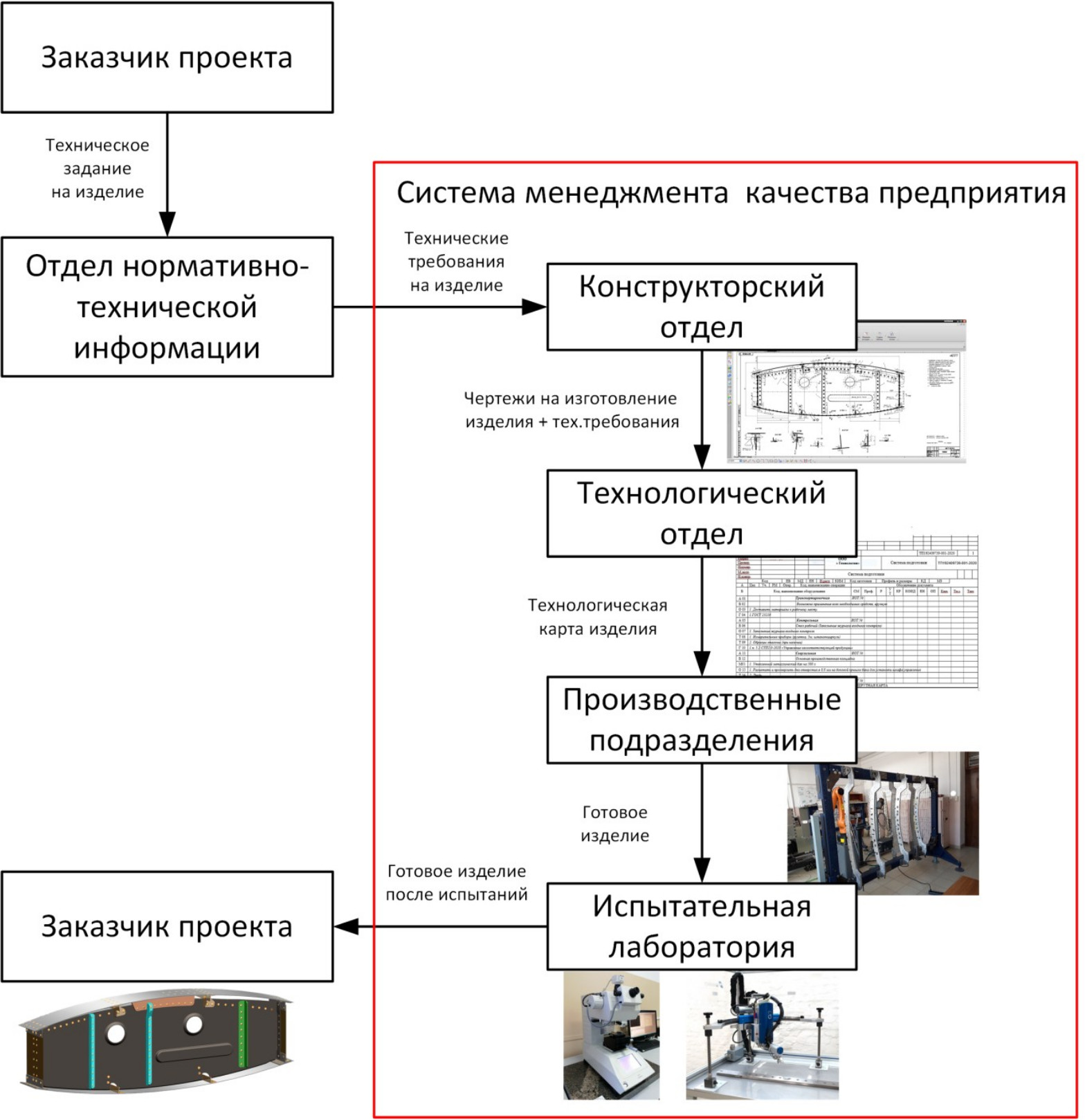 В основе СМК авиастроительного предприятия лежит принцип последовательной коммуникации между отдельными подразделениями предприятия, которые получают задания от ведущего технологического подразделения, осуществляющего проектирование изделия.