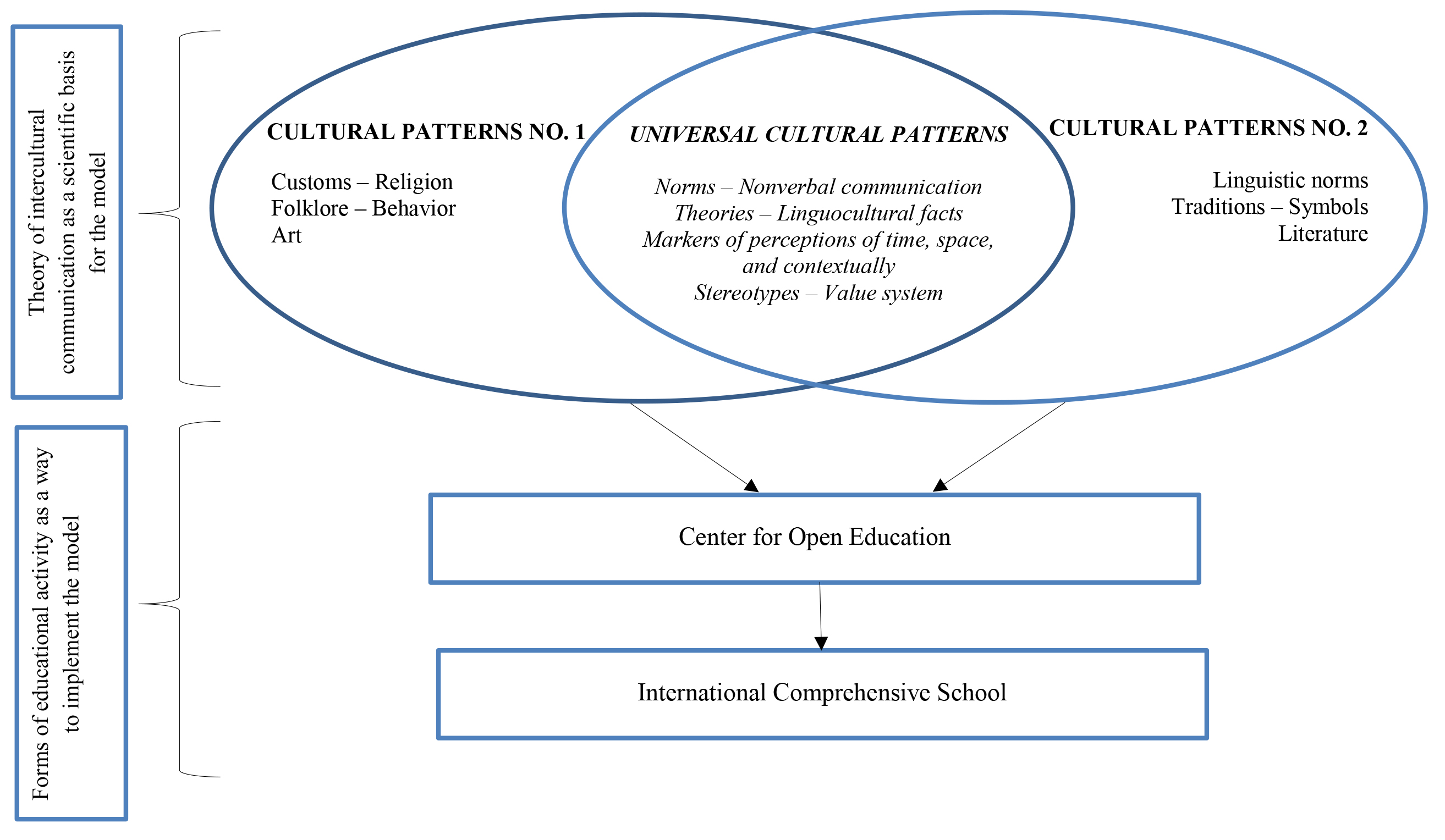 Международная школа как форма организации образовательной деятельности имеет различные научные основания. В рамках настоящего исследования базовой функциональной моделью стала межкультурная модель, реализующая подход к образованию с учетом различий культур, взаимопонимания и сотрудничества. Применение данной модели в образовательном процессе способствует развитию толерантности, уважения к лингвокультурным различиям, глубокому осознанию собственной национальной идентичности; закладывает основы успешности субъекта обучения в современном поликультурном и полиязычном глобальном мире. С другой стороны, обеспечивает реализацию поставленных государством задач в области экспорта российского образования, продвижения русского языка и русской культуры за рубежом.