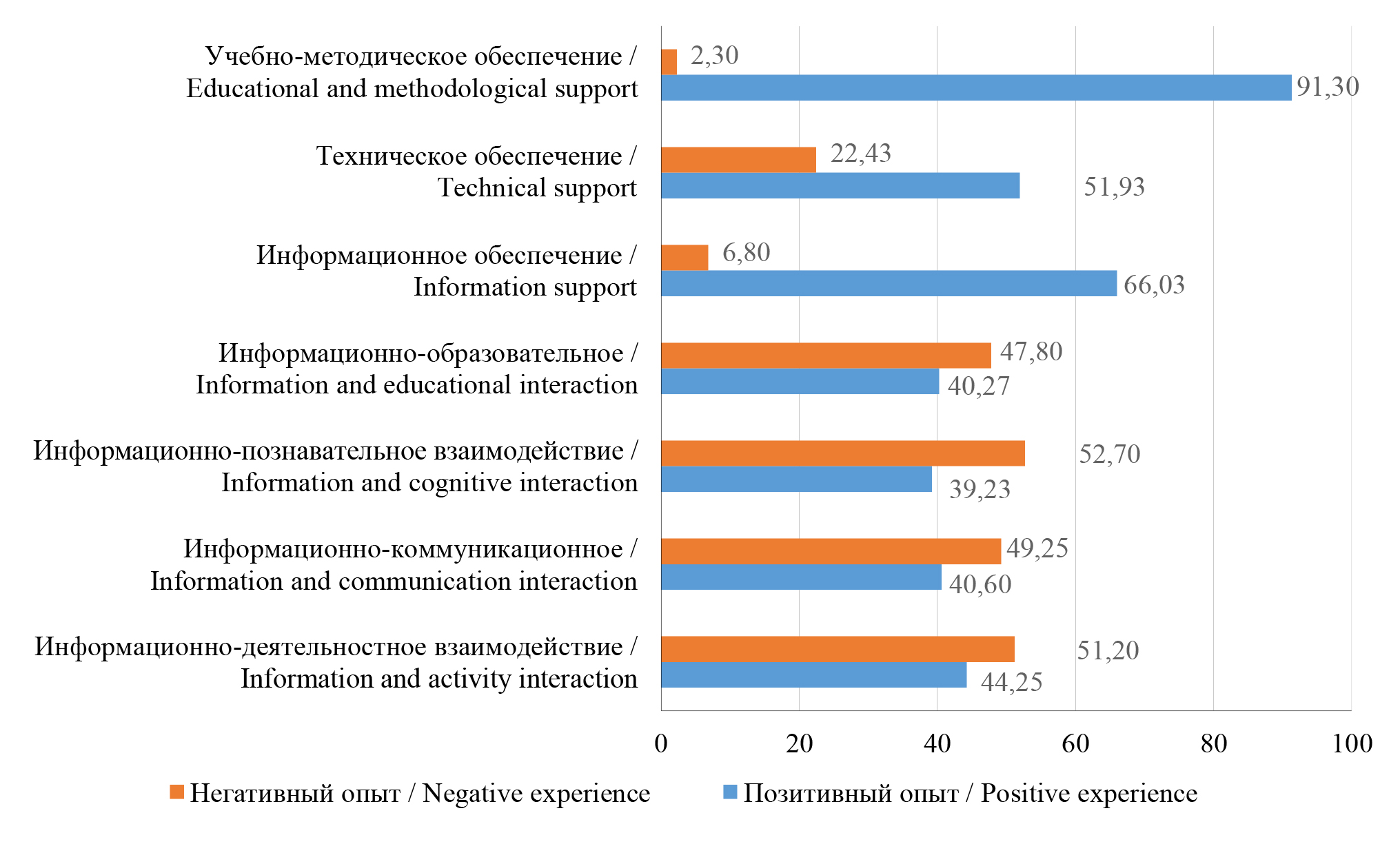Информационно-познавательное взаимодействие / Informational and cognitive interaction | Качество онлайн-обучения / Quality of online learning | 52,7 |