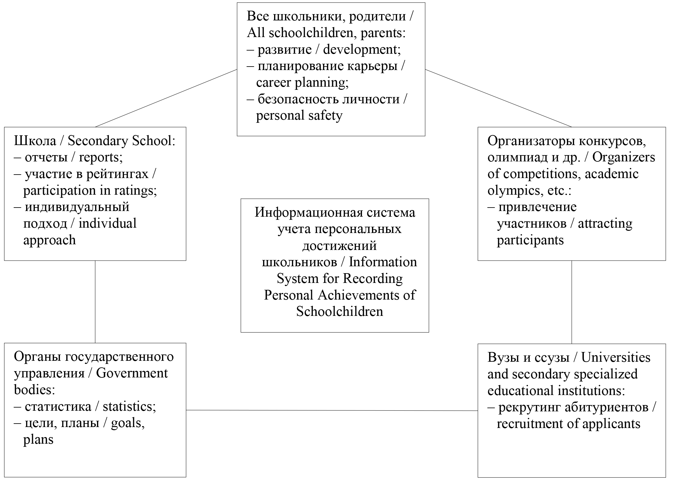 F i g. 2. Identified interested parties in the Information System for Recording Personal Achievements of Schoolchildren