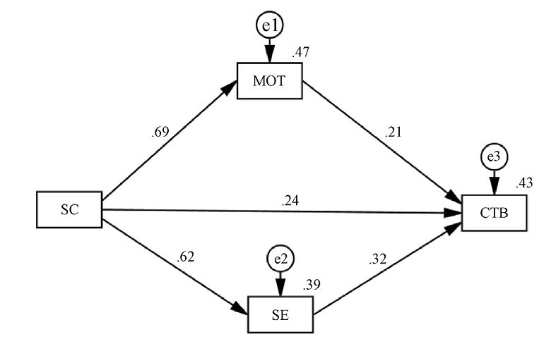 Table 4. The Result of Bootstrapping in Testing the Mediator of Motivation and Self-Efficacy
