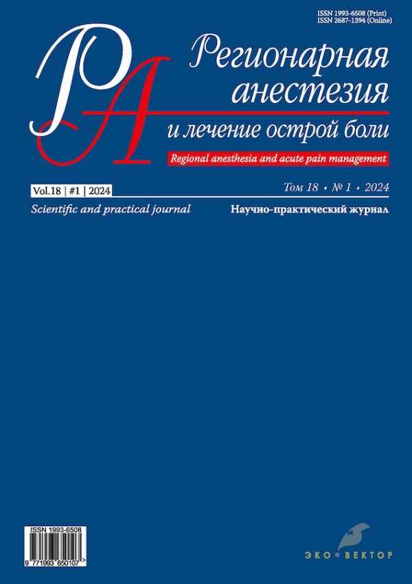 RESULTS: The decrease in pain intensity in both groups was unidirectional: after 8 h, it was 3.57±1.98 points to the NRS in group 1 and 2.91±1.97 points to the NRS in group 2, and after 24 h, it was 1.42±1.27 and 1.75±2.3 points to the NRS, respectively. No significant difference was found in pain intensity between the groups (р >0,05). The average consumption of ketorolac was 78.2±16.3 mg in group 2 — 63.28±17.23 mg for 1 patient. The average need for narcotic analgesics, that is, morphine, per patient was 22±8 mg in group 1 and 36.3±17.2 mg in group 2 (р <0,05). During the therapy, blood α-amylase, diuresis rate, creatinine level, and glomerular filtration rate did not have a significant difference between the groups, as well as pH, BE, and blood lactate levels (р >0,05). Peristalsis was noted after 12.49±19.73 h in the ESP-block group and after 16.9±21.3 h in the 2nd group (р <0,05). The ICU length of stay between the groups did not differ and was 62±3 and 62±7 h, respectively (р >0,05).
