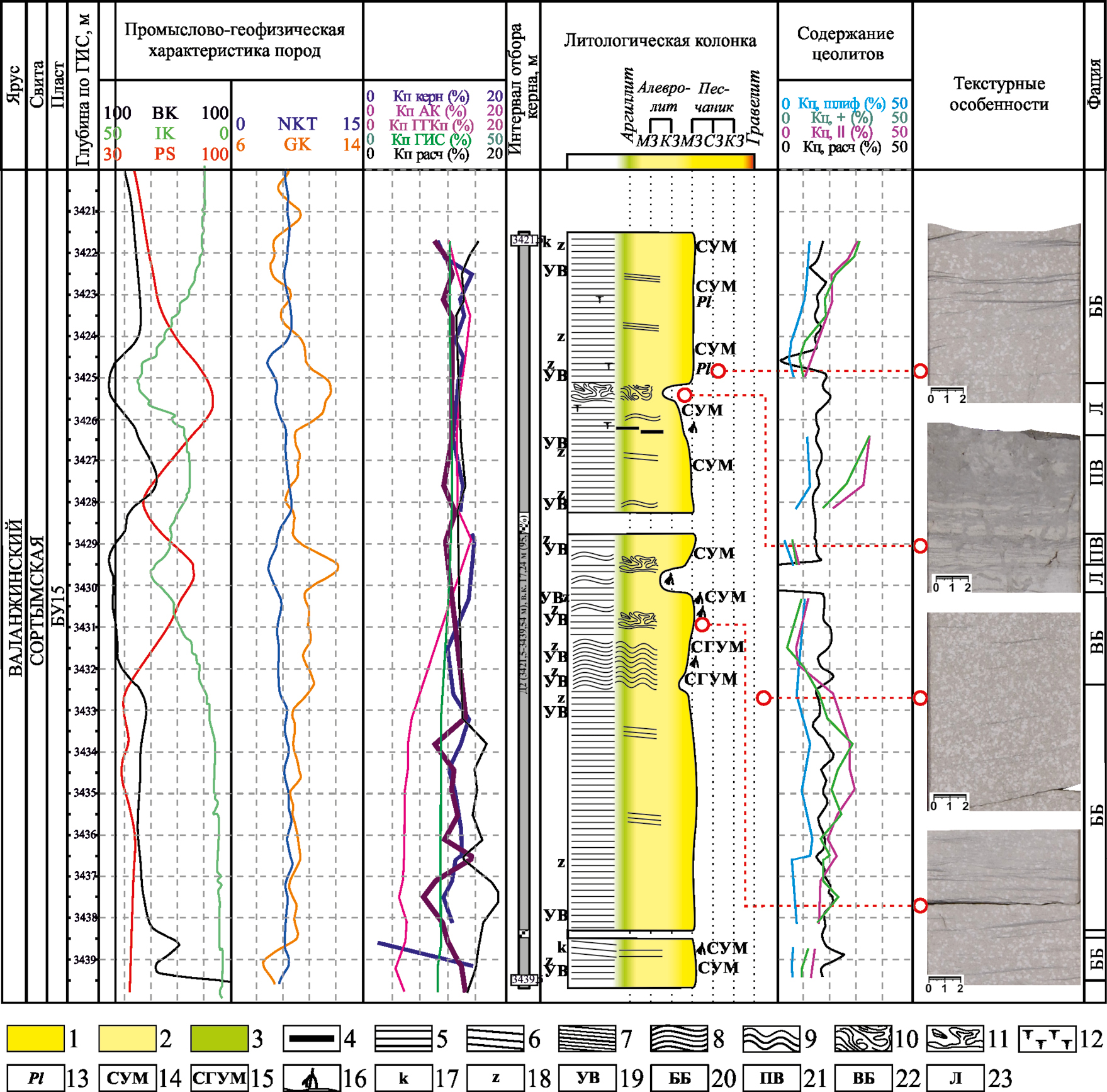 По результатам литолого-фациального анализа установлено, что содержание цеолитов в исследуемых пластах сортымской свиты изменяется в зависимости от смены обстановок осадконакопления.
