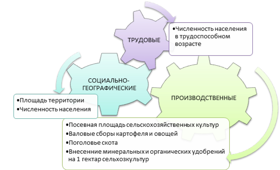 Table 3. Indicators of factors determining the significance of agricultural development by cities and regions of the Komi Republic