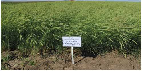 В 2018 г. создан новый сорт ломкоколосника ситникового Фарадиз, показанный на фото 2, который в экстремальных почвенно-климатических условиях Казахстана обладает высокой зимостойкостью и засухоустойчивостью, солонцеустойчивостью, устойчивостью против стравливания и вытаптывания животными. Сорт пастбищного типа отличается высокой интенсивностью отрастания весной и после укосов. В годы с высокой влагообеспеченностью способен сформировать основной укос и две-три отавы. Пастбищная спелость травостоя (30–40 см) наступает на 40-й день после весеннего отрастания, первая отава формируется на 27-й день, вторая – на 29-й день после стравливания. Сорт среднеспелый. Вегетационный период от отрастания до спелости семян составляет 93 дня (87-100), что на уровне стандартного сорта. Сорт Фарадиз устойчив к наиболее распространенным болезням – стеблевой ржавчине и спорынье. Средняя урожайность зеленой пастбищной массы составляет 73,5-112,2 ц/га, сухого вещества – 28,0–42,6 ц/га. Семенная продуктивность – 1,9-2,5 ц/га. В сухой массе содержится 17,6–20,0 % сырого протеина, в отдельные годы – до 21,2 %; кормовых единиц – 0,5 кг/кг. Сорт включен в Государственный реестр селекционных достижений Республики Казахстан и допущен к использованию в производство по Северному и Западному Казахстану [7].