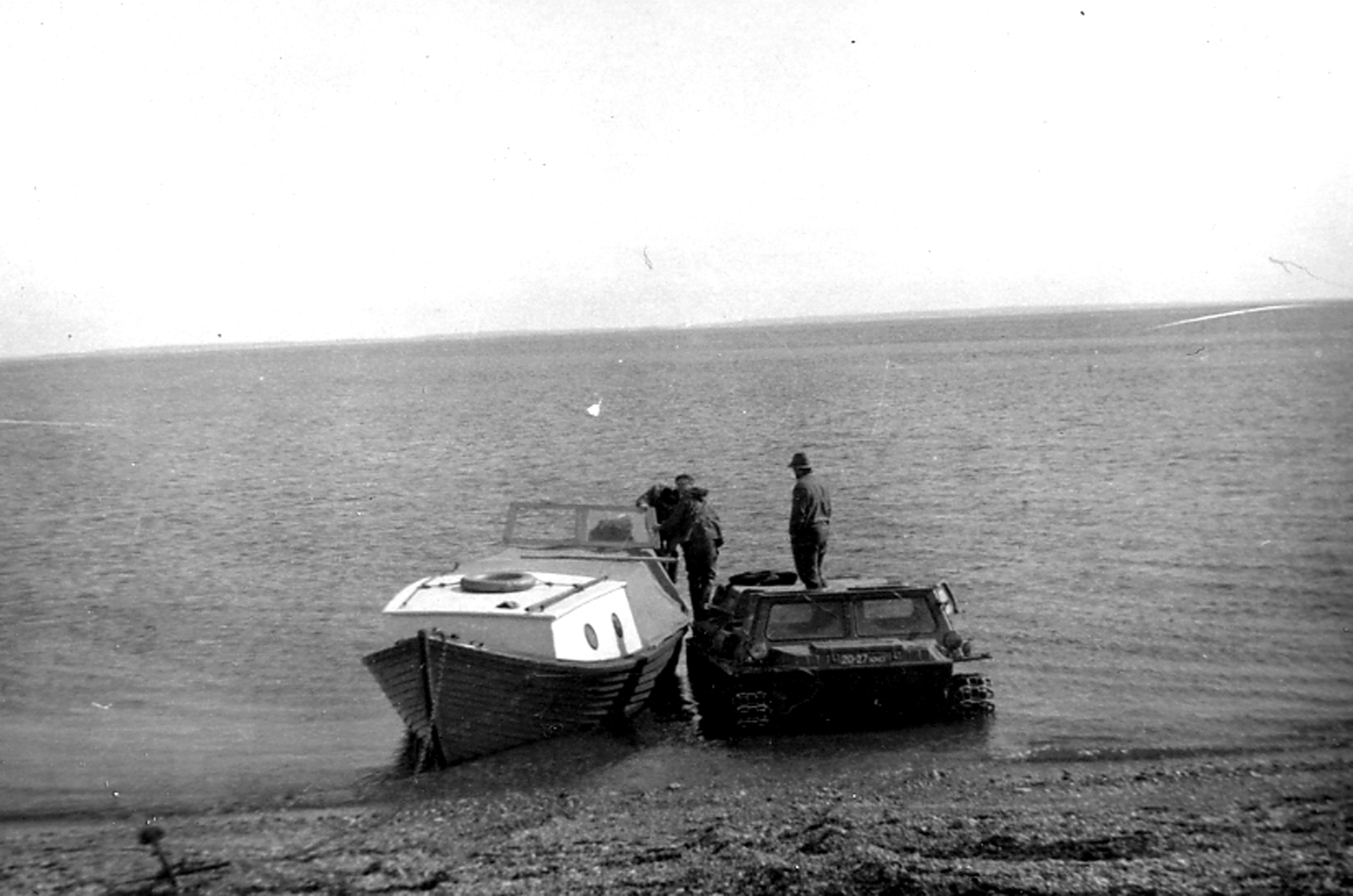In 1970, the Institute of Geology received its first all-terrain vehicle. Today it is the most reliable transport. N. P. Yushkin’s expedition on the Vaigach island.