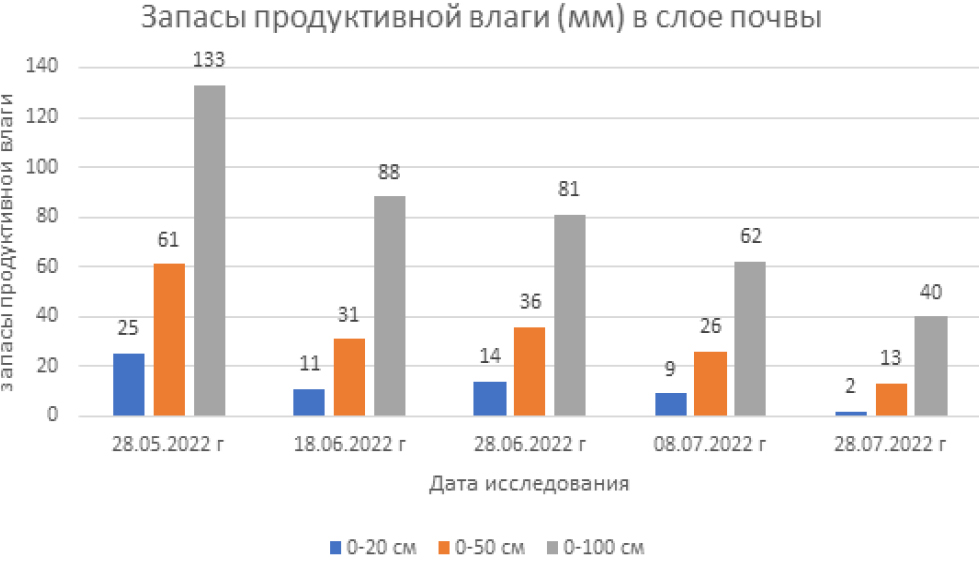 Рисунок. Запасы продуктивной влаги (мм) в слое почвы.