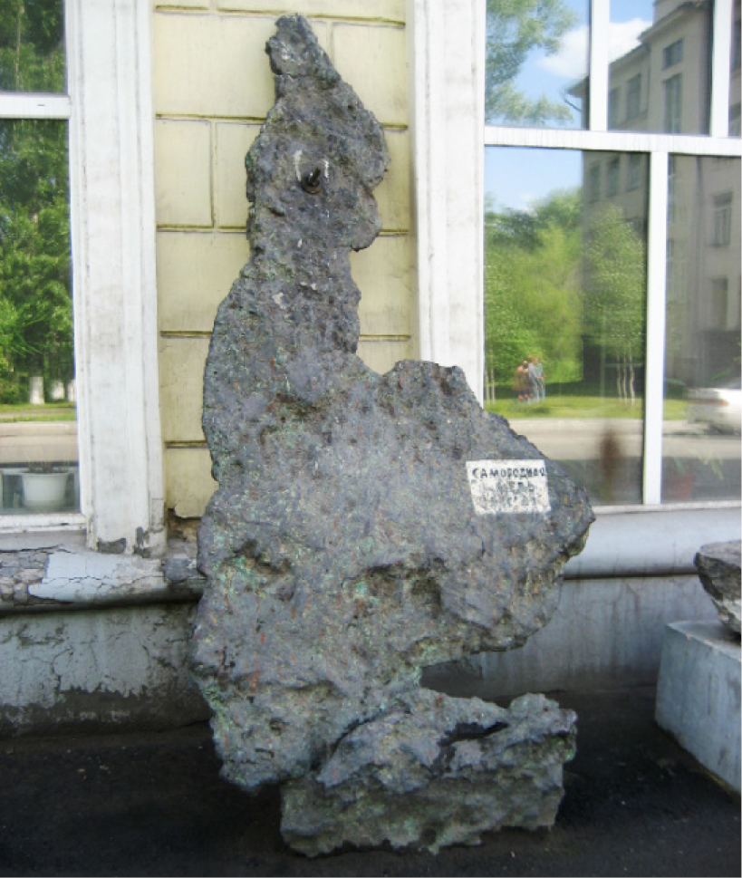 Figure 1. The copper nugget from the Taymet deposit weighing 3.3 tons, on the exposition at the Kemerovo Branch of the Territorial Fund of Geological Information for the Siberian Federal District (Novokuznetsk). Photo from an open source.