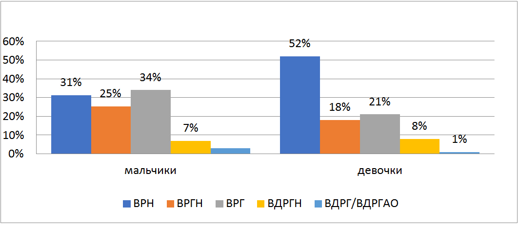 Рис. 2. Распределение детей с ВРГН по полу и нозологическим формам