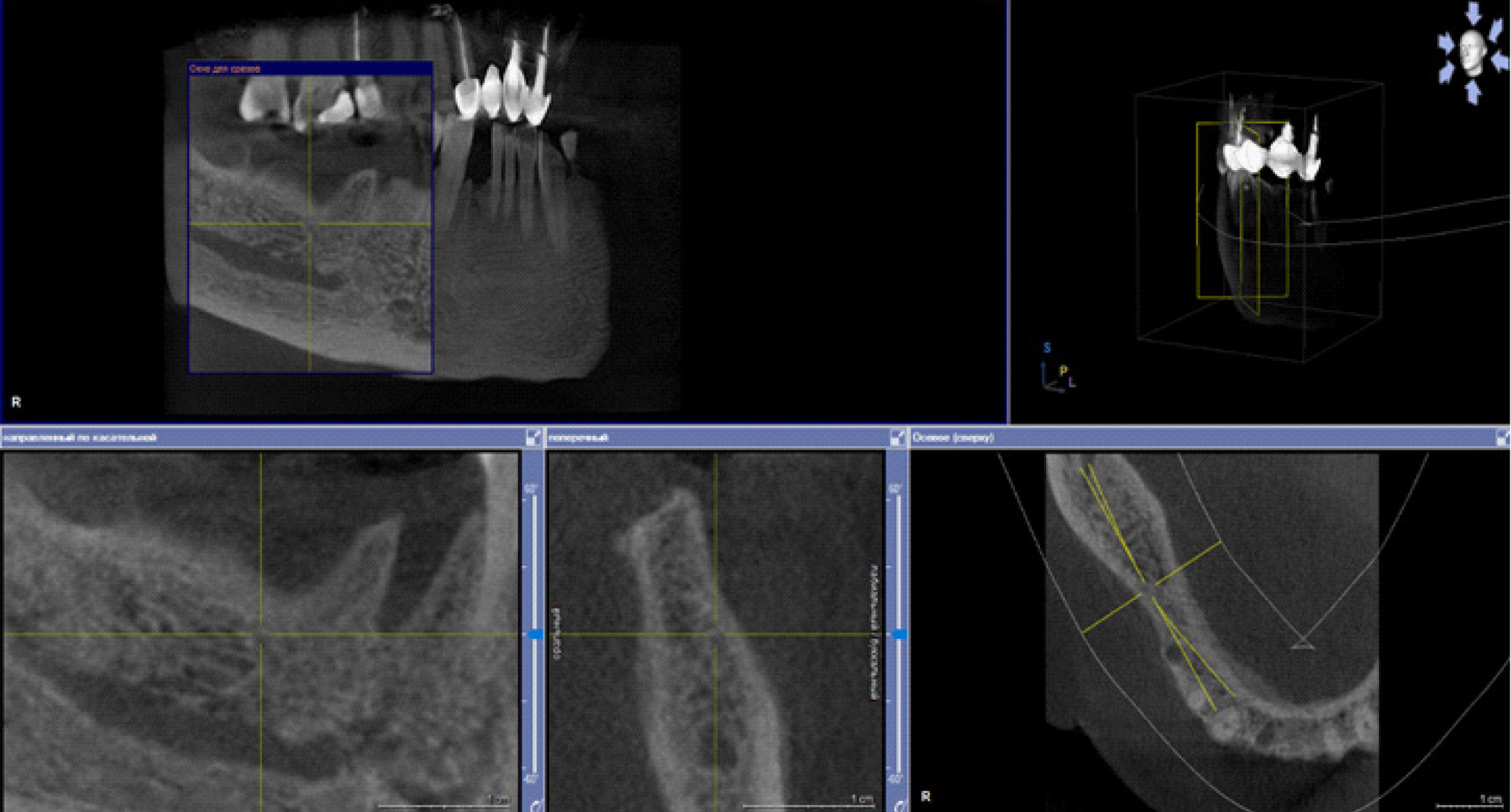 Рис. 4. Компьютерно-томографическое исследование на этапе лечения остеонекроза нижней челюсти справа у пациентки Б. в 2023 г.