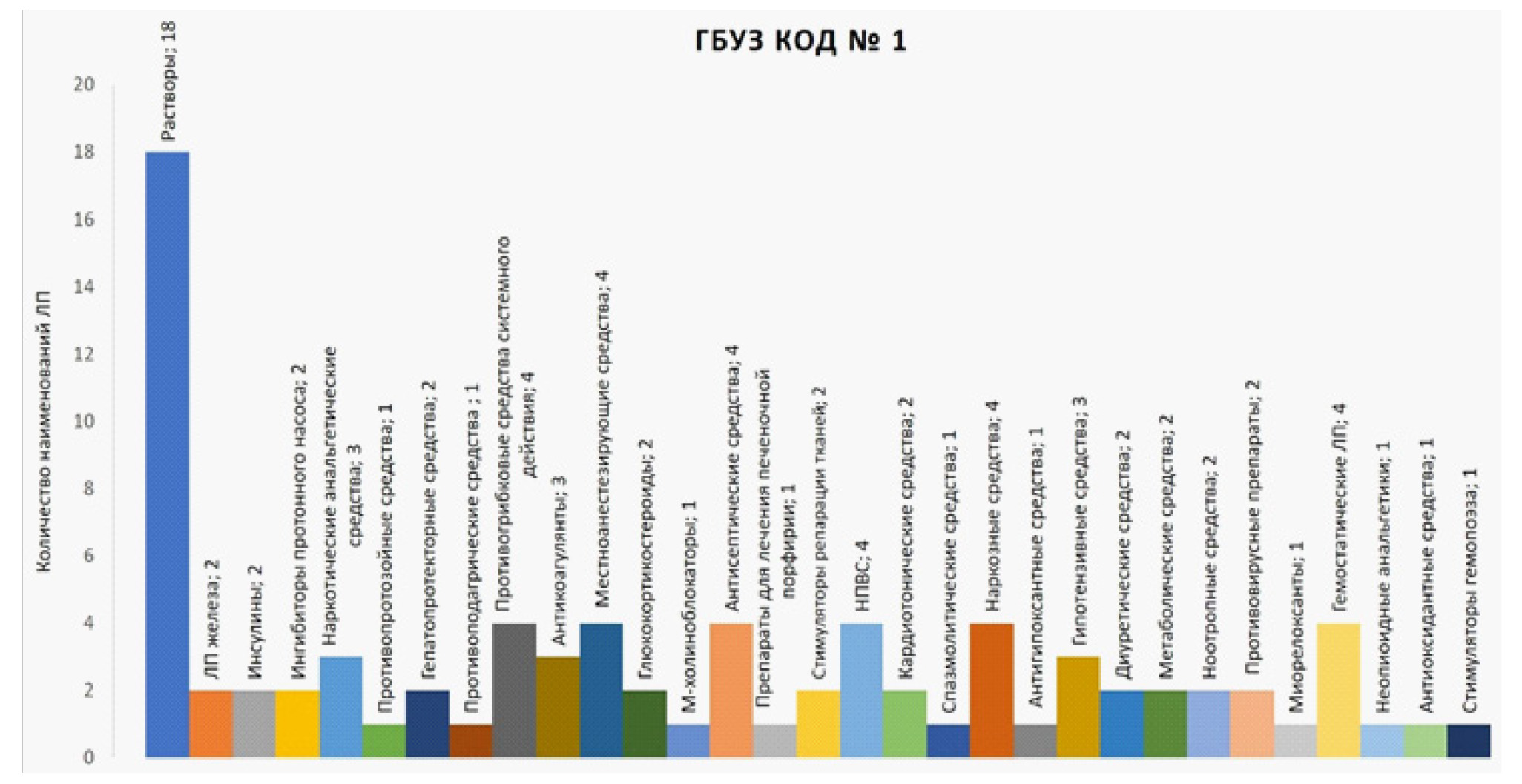 Рис 1. Фармакотерапевтические группы ЛС, относящиеся к A сегменту в ГБУЗ КОД № 1