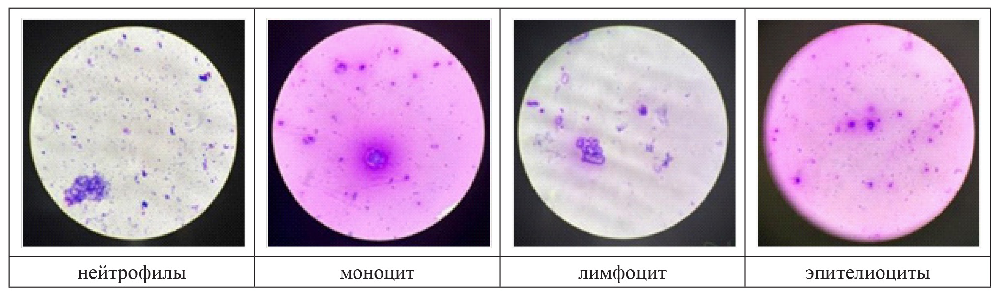 нейтрофил | лимфоцит | моноцит | эпителиоциты | ||