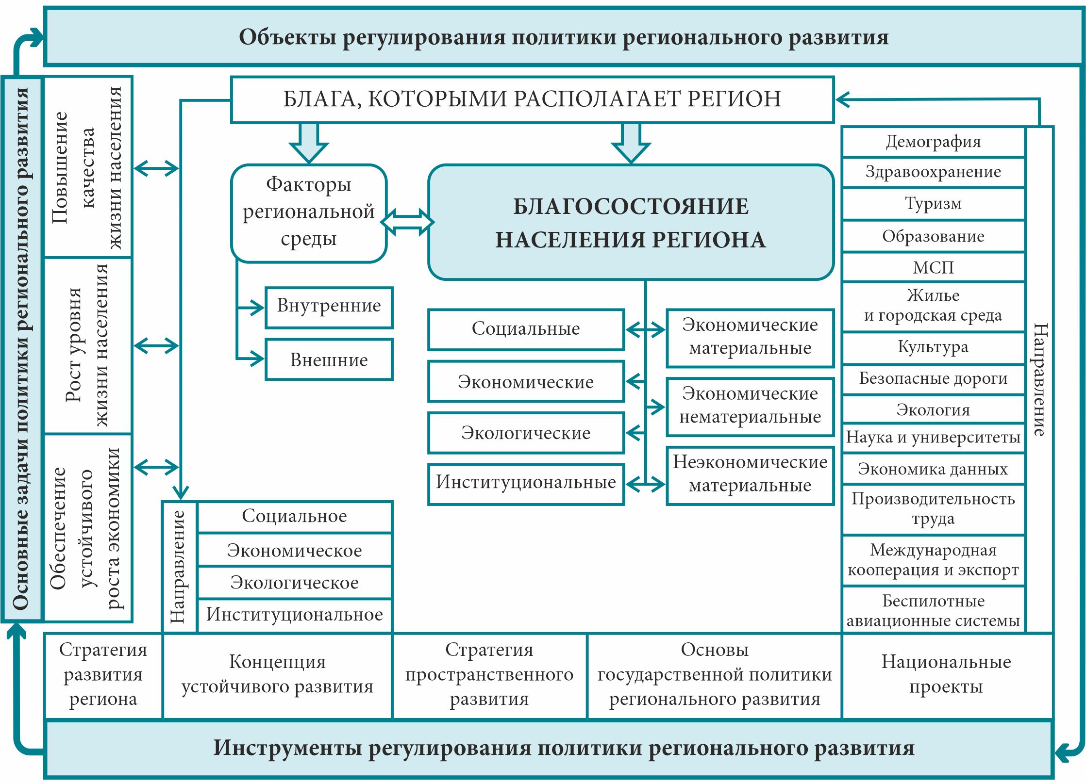 Исходя из основных правовых инструментов, которыми сегодня располагает регион для реализации политики своего развития, таких как Основы государственной политики регионального развития Российской Федерации на период до 2025 г., Стратегия пространственного развития Российской Федерации на период до 2025 г., национальные проекты и связанные с ними федеральные программы, Концепция устойчивого развития, а также Стратегия развития субъекта РФ, можно сформулировать ключевые задачи его развития. Изучив данные документы, автор статьи заключает, что все множество задач представляет собой три основных блока: обеспечение устойчивого роста экономики, повышение уровня жизни населения и повышение качества жизни населения.