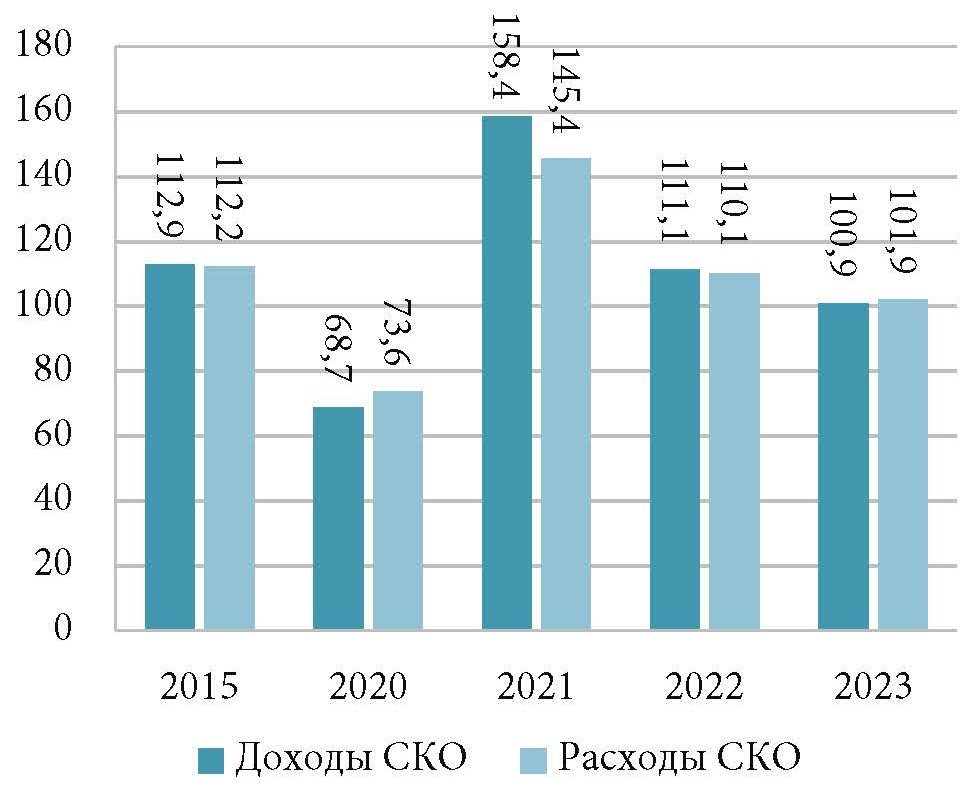 Сравнение темпов изменения основных показателей СКО позволяет сделать вывод об их замедлении в 2022–2023 гг. (рис. 2).