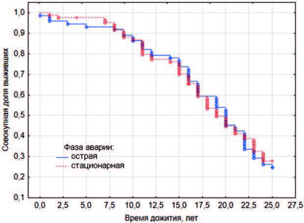 Рис. 2. Функция 25-летнего дожития ЛПА на ЧАЭС, включенных в выборку.