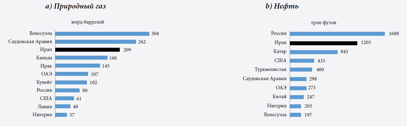 Рис. 1. Крупнейшие подтвержденные запасы нефти и природного газа по странам: 2021