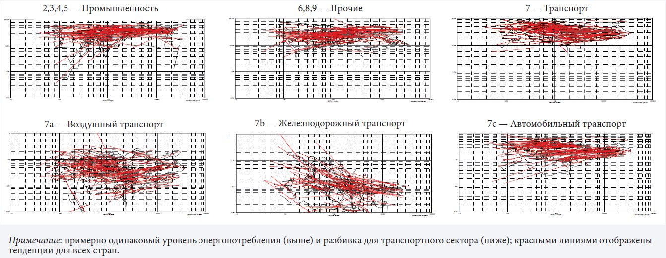 Что касается переходов внутри энергетического сектора в плане ставок на различные виды топлива, то в общей сложной картине выделяются несколько тенденций. Прежде всего отметим отказ от «грязных» (с обильными выбросами) первичных видов топлива (уголь и сырая нефть) в пользу ориентированных на потребителя и более чистых видов (электричество, тепло, СПГ и авиационное топливо). Одновременно уменьшается экономический вклад «тяжелых» отраслей (например, сталелитейной) промышленности и сельского хозяйства при увеличении доли услуг.