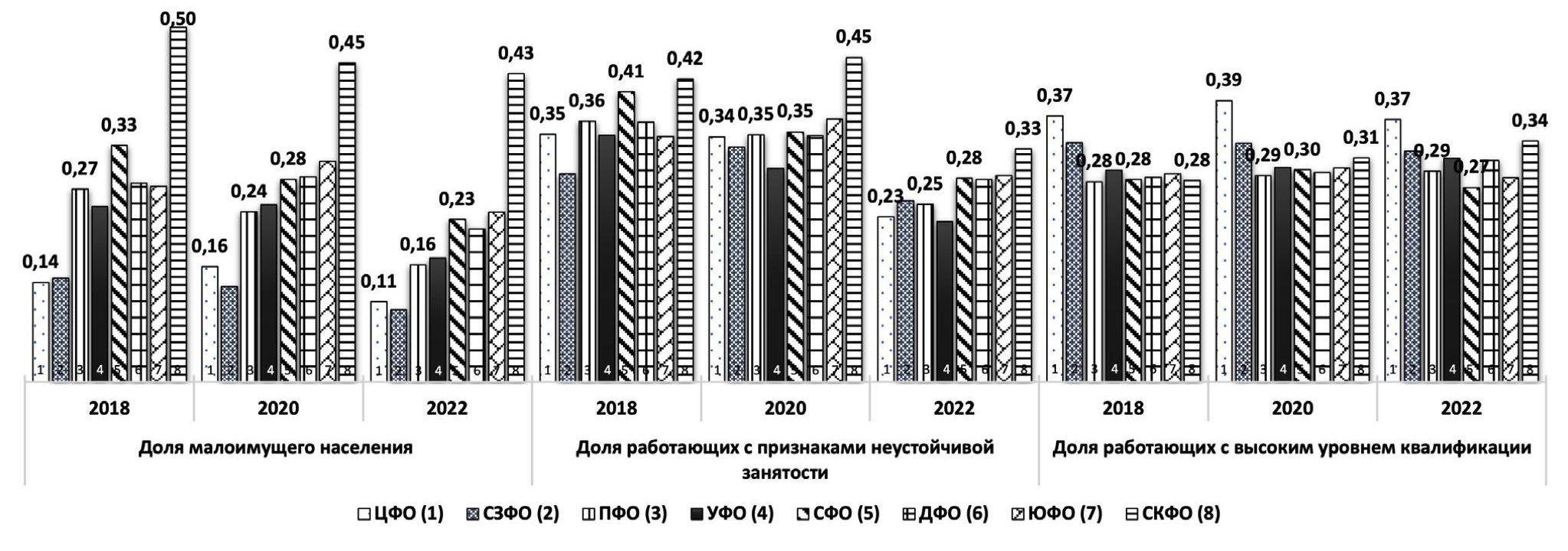 Figure 1. Employment Quality Characteristics by Federal Districts, 2018-2022