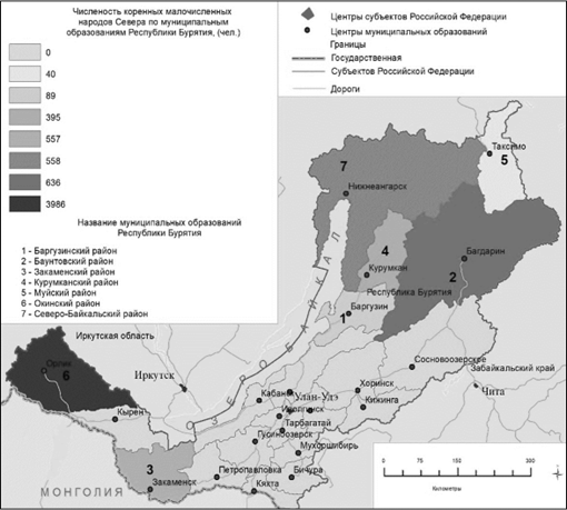 Рисунок 1. Территории компактного проживания коренных малочисленных народов в Республике Бурятия