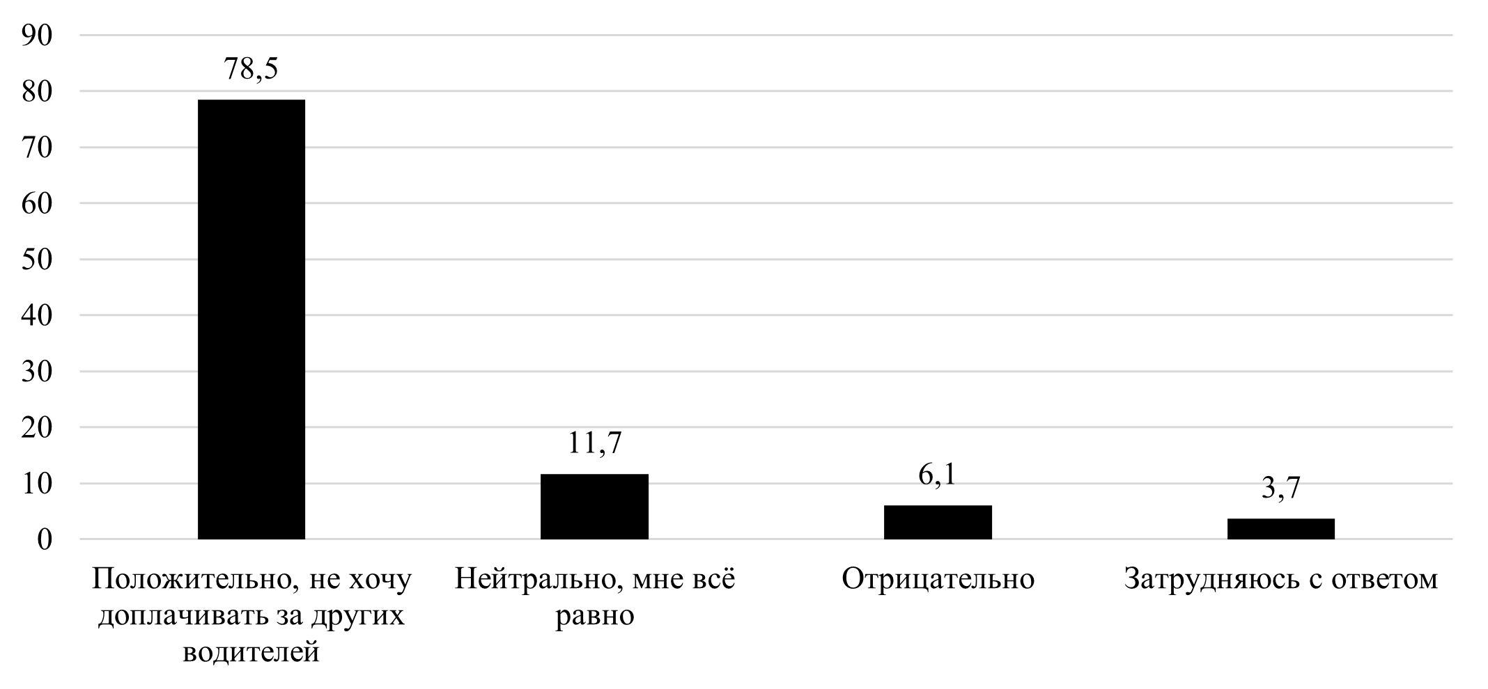 Distribution of Respondents' Answers to the Question: «How Do You Feel about Fixing Cars without CTP Policies Using Traffic Cameras?», %