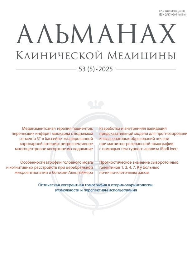 Данная статья подготовлена авторским коллективом в рамках НИР «Научное обоснование методов лучевой диагностики опухолевых заболеваний с использованием радиомического анализа» (№ ЕГИСУ 123031500005-2) в соответствии с приказом Департамента здравоохранения города Москвы от 17.12.2024 № 1184 «Об утверждении государственных заданий, финансовое обеспечение которых осуществляется за счет средств бюджета города Москвы, государственным бюджетным (автономным) учреждениям, подведомственным Департаменту здравоохранения города Москвы, на 2025 год и плановый период 2026 и 2027 годов».