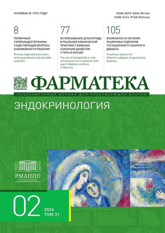 Methods. 130 pregnant women without a history of carbohydrate metabolism disorders were examined (an oral glucose tolerance test with 75 g of glucose and an additional determination of fasting insulin during the test). The subjects were divided based on the examination results, as well as calculation of the Matsuda index: group I – 45 pregnant women with GD and β-cell dysfunction, group II – 43 pregnant women with GD and IR. Additionally, all study participants were surveyed using a specially developed questionnaire. Statistical analysis was carried out using comparative analysis. Data are presented as medians and interquartile ranges of quantitative indicators in groups. Data were considered statistically significant at p<0.05.