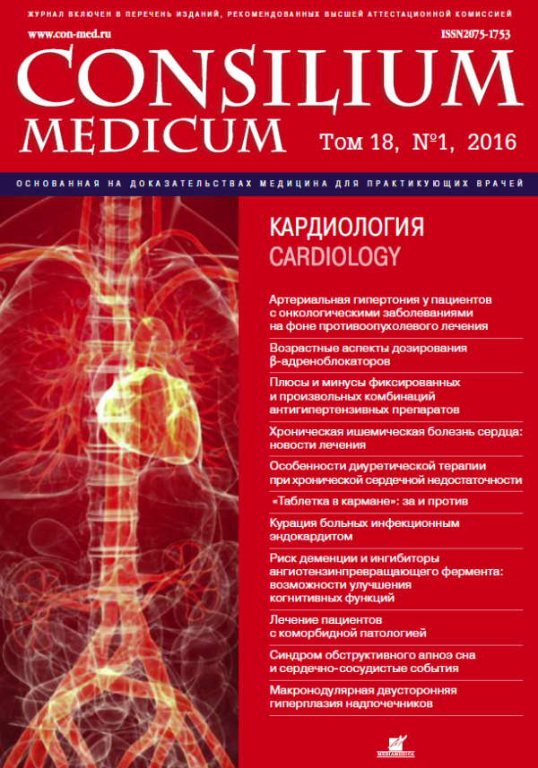 В последние годы в медицине создано новое направление, объединившее усилия кардиологов и онкологов, - кардиоонкология, задачами которой являются разработка и оптимизация алгоритмов совместного ведения онкологических больных с целью минимизации кардиотоксического эффекта противоопухолевого лечения, что позволит улучшить прогноз и увеличить продолжительность их жизни. Известно, что химиотерапевтические препараты направленного действия могут оказывать кардио - и вазотоксическое действие, способствуя развитию и обострению имеющихся сердечно-сосудистых заболеваний. Артериальная гипертония (АГ) является одним из осложнений противоопухолевой терапии злокачественных онкологических заболеваний (ОЗ) и наиболее часто возникает при назначении ингибиторов рецептора эпидермального фактора роста. Истинную частоту «впервые возникшей» АГ у этой категории больных определить довольно сложно, и она варьируется в значительных пределах в зависимости от типа, дозы, временного периода проведения химиотерапии. Обследование и лечение пациентов с ОЗ, у которых развилась АГ на фоне химиотерапии, проводится согласно общепринятым рекомендациям, однако имеются особенности при назначении разных классов антигипертензивных препаратов.