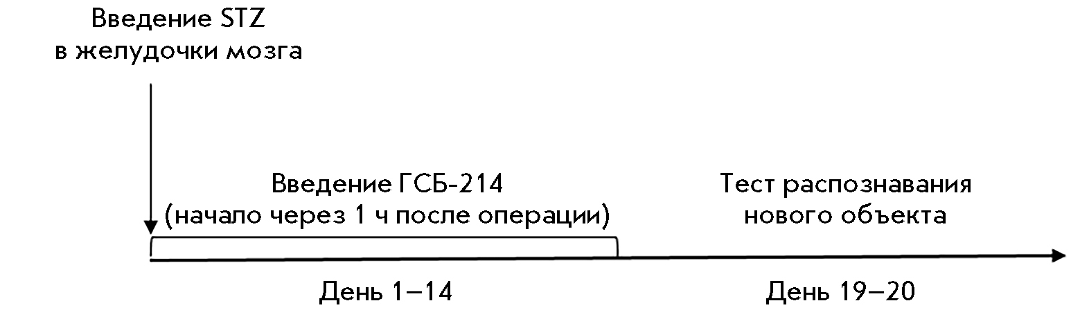 Fig. 3. The scheme of the experiment on the mnemotropic effects of GSB-214 in the streptozotocin-induced AD model. STZ – Streptozotocin
