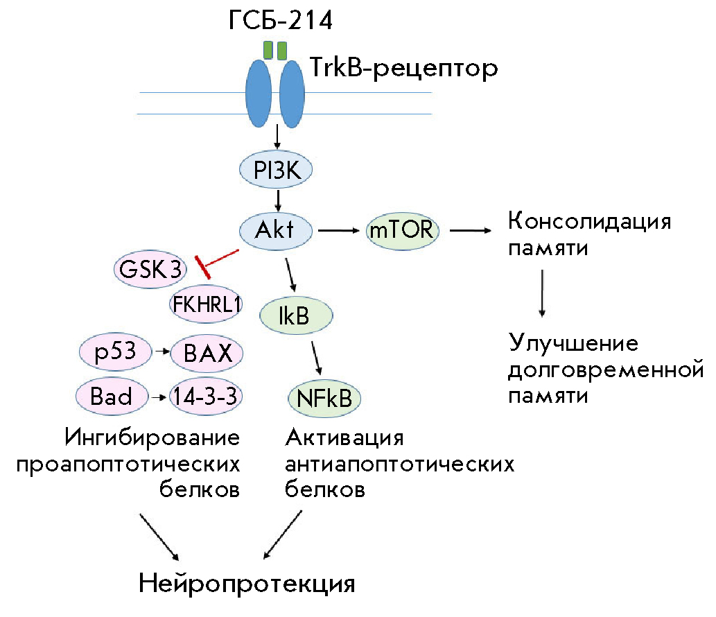 Activation of the PI3K/AKT signaling pathway by the dipeptide GSB-214, which had previously been identified in in vitro experiments [10], may promote neuroprotection by inhibiting pro-apoptotic proteins and activating anti-apoptotic proteins, as well as improve memory consolidation and, therefore, long-term memory through the activation of the regulator of mTOR protein synthesis.