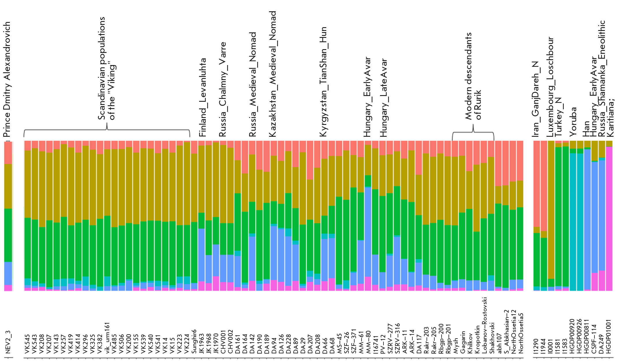 Thus, it is clear that the gene pool of medieval “Vikings,” representing a significant part of Northern Europe (island and mainland), came into being partly through a flow of genes from Siberia, and the male ancestors of Prince Dmitry Alexandrovich were, with a high probability, men who left the Bolshoy Oleny burial ground island on the coast of the Kola Peninsula about 3,600 years ago.