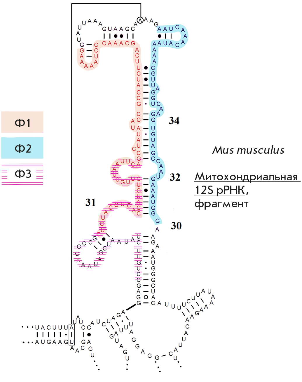 Fig. 3. Mouse 12S rRNA fragments analyzed using mass spectrometry (F1, F2, F3). Two fragments (F1, F3) partially overlap. Image adapted from [15]